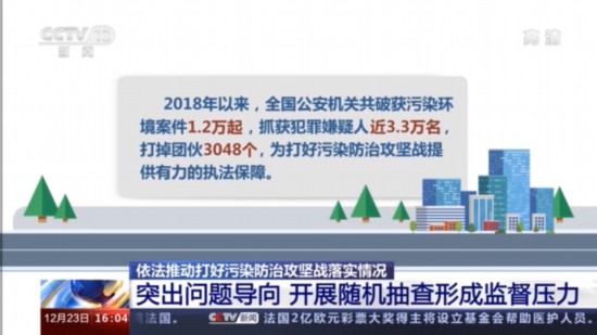 2018年以来,全国公安机关共破获污染环境案件1.2万起,抓获犯罪嫌疑人近3.3万名,打掉团伙3048个,为打好污染防治攻坚战提供有力的执法保障。