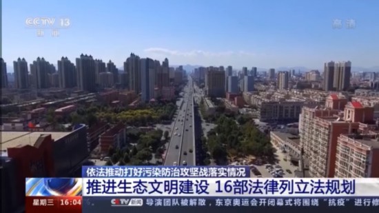 生态文明制度体系建设加快推进,有16部相关法律列入立法规划,在修改完善环境保护法、大气污染防治法、水污染防治法等法律基础上,制定了土壤污染防治法、生物安全法、资源税法,修改了固体废物污染环境防治法,审议了野生动物保护法、长江保护法等草案。