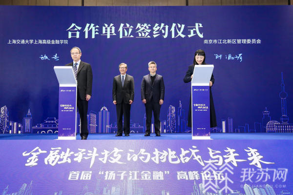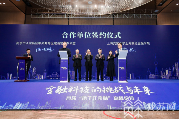 论坛上,南京市江北新区管理委员会与上海交通大学上海高级金融学院签署了战略合作协议,南京市江北新区中央商务区建设管理办公室与上海交通大学上海高级金融学院签署了合作协议。随后,屠光绍和沈剑荣共同为上海交通大学上海高级金融学院(南京江北新区)金融科技创新基地揭牌。