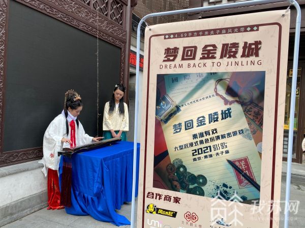 南京夫子庙景区内,李香君故居的墙上挂起了红色对联,身着古装的小姐姐弹起了古琴,路边摆摊的小哥哥会大喊一声,问你需不需要线索……不要惊奇,这些现实场面都是游戏中设定的场景。
