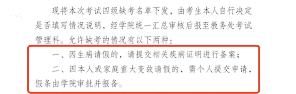 山西某大学教务处工作人员:咱们的考位满足不了那么多人,这个规定不是第一次,已经好几次了。除非你是真的生病了、做手术了没法来,那样的话还需要提供医院的病例证明。因(其他)事等这就是个人原因了。缺考,下一次就停考一次,学生报名就会发现,报名的时候报不上就是不能考。