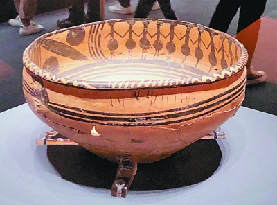 甘肃出土的跳舞纹彩陶盆。光明日报记者李韵摄