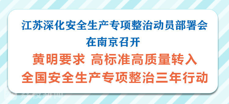 黄明强调,深化专项整治,要坚持培根固本、提升本质安全。一要持续加强源头治理。在淘汰落后产能、推进高质量发展上,要加快从源头上解决问题;严格安全准入,从用地审批、产业布局、进园入区等方面加强源头规划,提高标准、提高门槛,严防“先天不足”造成新的风险;积极取缔淘汰落后生产能力的小矿山,停用尾矿库要全部实现闭库销号。二要持续提升安全基础能力。要发挥教育特别是职业教育发达的优势,加强化工等相关职业院校和学科建设,积极提升从业人员安全素质;要加强安全科技攻关,积极推动煤矿智能化改造和危化品重大危险源、尾矿库、“两客一危”、渔船商船等信息化在线监控预警、联网联控;继续实施生命防护工程,加强桥梁隧道、隔离防撞、老旧建筑、市政设施等安全检测和防护系统建设,切实提高安全防护水平。三要持续推动制度创新。将一年专项整治中形成的多部门联动工作机制、强化企业主体责任等一系列制度成果和经验做法,积极推动落地见效,并在实践中不断完善,真正通过制度创新持续推进江苏安全生产治理体系和能力现代化。