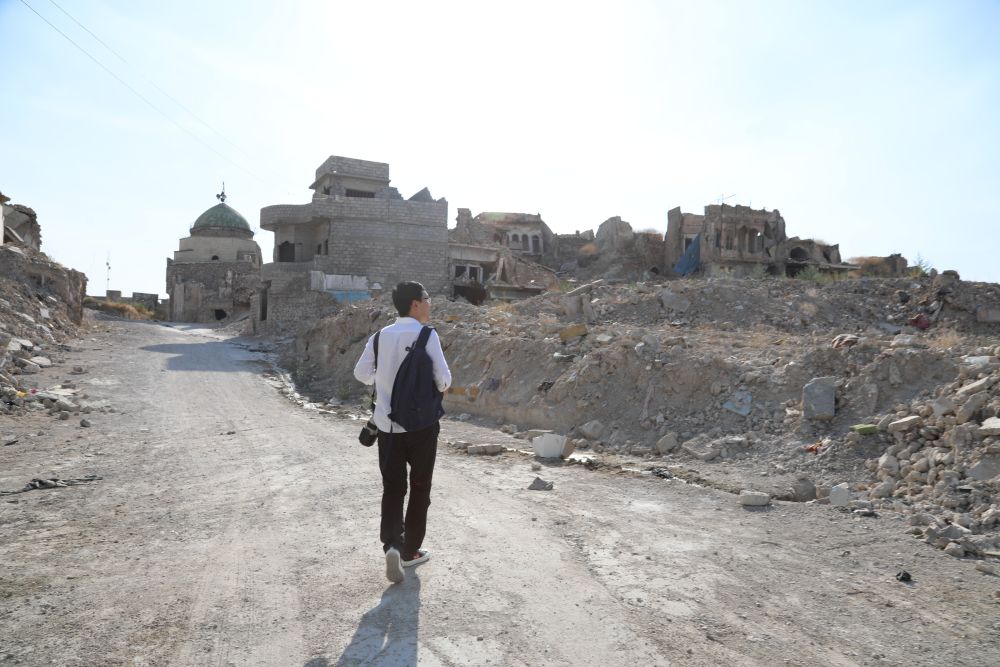 2019年7月2日,张淼在被摧毁的摩苏尔老城采访工作。(记者本人供图)