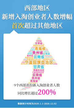 淘宝最新数据显示,今年西部地区新入淘创业者人数增幅首次超越其他地区,领跑全国。