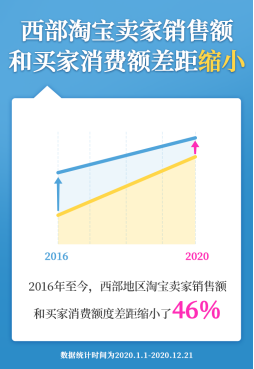 西部淘宝卖家数量提升、消费者线上消费增长的同时,西部地区的产品也以更快的速度走向全国。数据显示,过去五年,西部地区淘宝卖家销售额和买家消费额度的差距缩小了46%。而且,不断有西部“土生土长”的新品牌在淘宝天猫平台崭露头角。