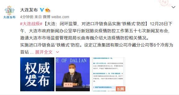 荔枝新闻讯 12月28日下午,大连市政府新闻办公室举行新冠肺炎疫情防控工作第五十七次新闻发布会,邀请大连市市场监督管理局局长曲寿巍介绍大连疫情防控相关情况。