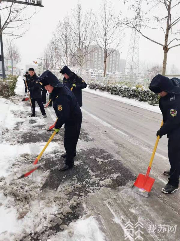 12月29日,随着降雪到来,连云港各区城管环卫部门根据预案开展铲冰除雪工作。