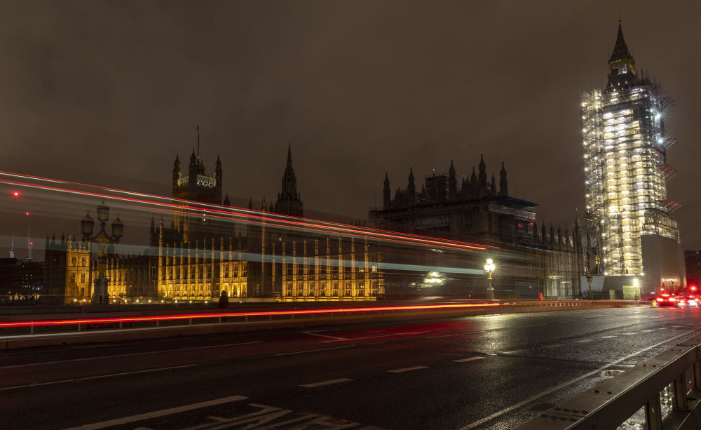 12月23日,车辆从英国伦敦的议会大厦前驶过。新华社记者 韩岩 摄