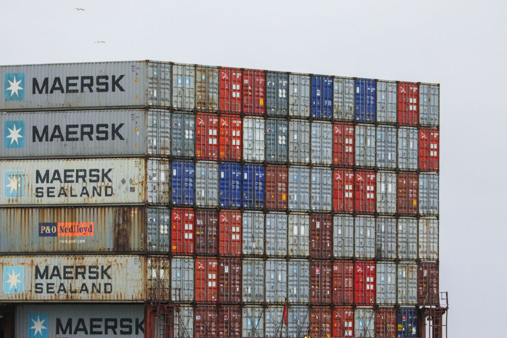 这是12月18日在英国南安普敦港口拍摄的货轮上的集装箱。新华社发(蒂姆·爱尔兰 摄)