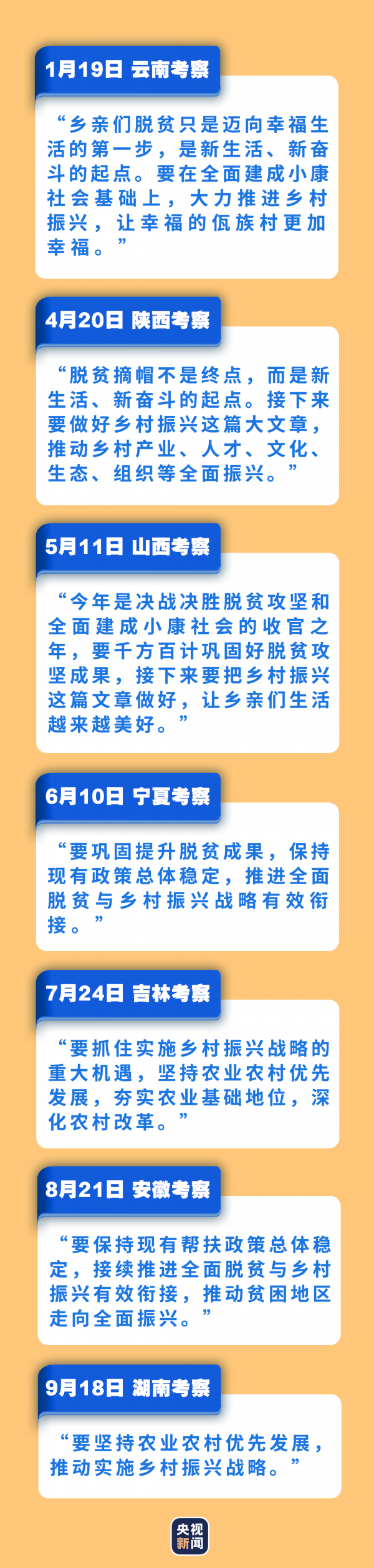 在2020这个极不平凡之年,习近平总书记心系父老乡亲,始终把“三农”工作放在重要位置,在赴地方考察调研中,深入乡村,发表重要讲话、作出重要指示批示,为做好“三农”工作指明方向。