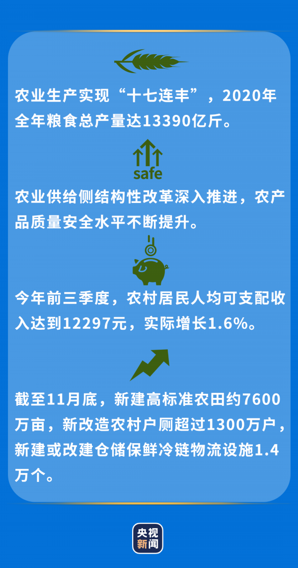 突如其来的新冠肺炎疫情、长江流域严重洪涝灾害、东北地区夏伏旱……今年以来,各地农村克服重重困难,抢农时、保生产,亿万农民用辛勤汗水换来了沉甸甸的收获——