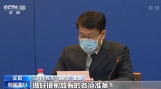 沈阳市教育局副局长 崔巍:我们将组织中小学,做好提前放假的各项准备。关于大学寒假放假安排,各学校不得提前放假;放假前,需全员核酸检测,持核酸检测阴性报告离校。