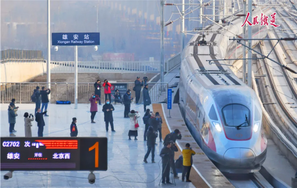 2020年12月27日10时38分,时速350公里复兴号高速动车组从北京西站开出,奔向“未来之城”雄安新区。几乎同时,雄安站也向北京发出了首发列车。京雄城际铁路全线开通。