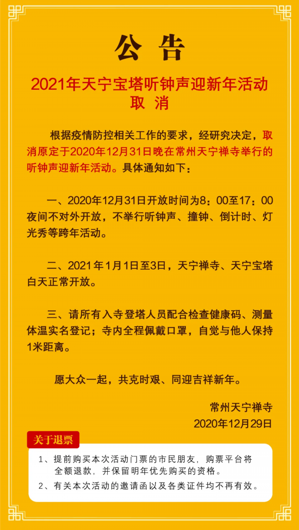 疫情防控,不得松懈,常州多地跨年活动取消!