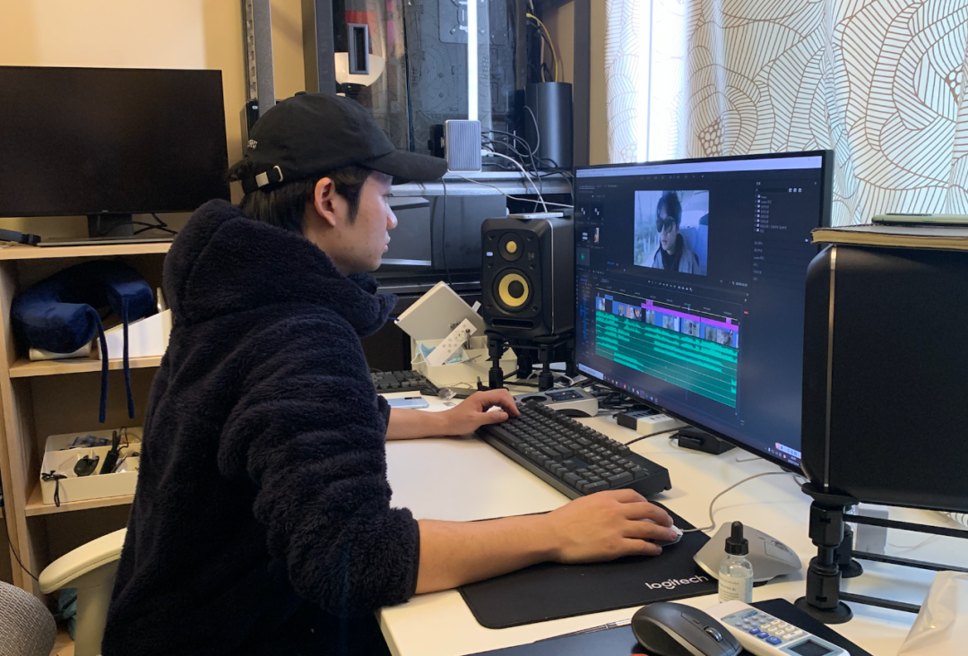 △ 林晨在工作室剪片子。(总台央视记者张亚琼拍摄)