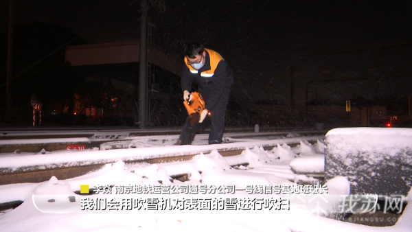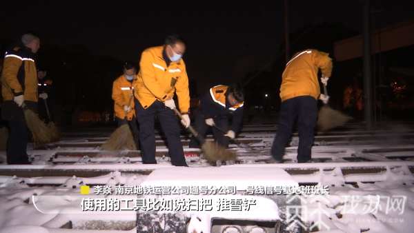 记者来到南京地铁小行车辆基地,只见工作人员正在扫雪作业。南京地铁运营公司通号分公司一号线信号基地班班长李焱告诉记者,眼前所看到的,就叫道岔。地铁想要转换方向,必须通过它来实现, 所以说在雨雪天气之下,在这边做好除雪工作,就非常重要。