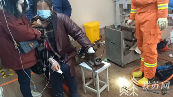 据了解,女子姓朱,45岁,在沛县某农贸市场卖猪肉。之前在帮顾客绞肉时,就曾不小心将自己右手手指绞伤过。所以在这次发生意外后,就第一时间抱着绞肉机来到医院,途中又及时向消防救援人员求助。消防人员经过1个多小时的破拆,最终成功将女子被卡的手解救出来。