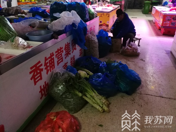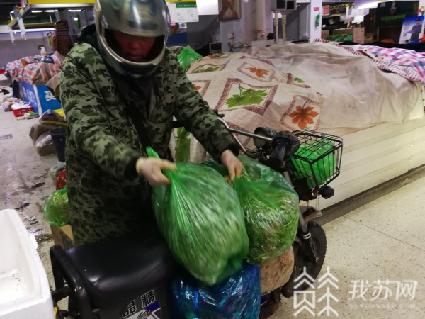 12月29日早上五点半,记者在南京市玄武区香铺营菜场遇到了徐老板,他正推车进入市场,车上大包小包的都是刚刚批发回来的各种蔬菜。他说今天一共进了十八种蔬菜,货源还可以,不存在问题。但是现在的菜价进价要涨了不少:“蔬菜进价普遍在涨,比如毛豆、四季豆。毛豆之前是5块多,现在6块多;四季豆之前也是5块多,现在6块多。今天的货上冻了弄不出来,大棚里面都冻起来了,大棚菜也冻起来了。”