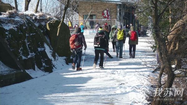 随着蜿蜒的山路,很多游人一边攀登,一边欣赏沿途的雪景,不知不觉便忘记了雪后登山的疲惫,登上了紫金山最高峰头陀岭。
