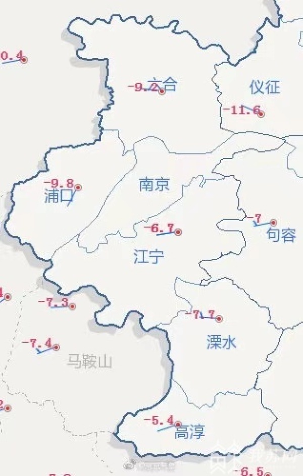 今天一大早出门,连云港、徐州地区普遍在-10℃左右,最低灌南-11.8℃,中部地区气温普遍在-8℃左右,南部-6℃左右。大南京瞅一眼~这是冻哭了!大浦口低至 -10.3 ℃!
