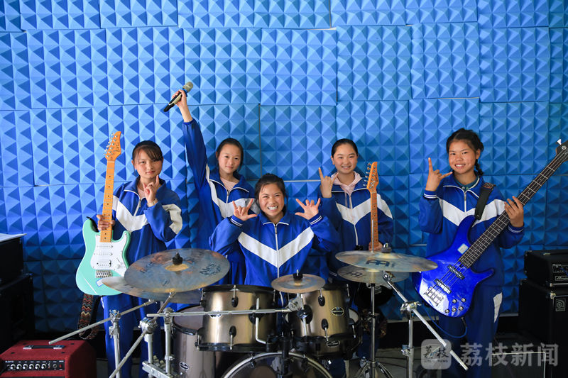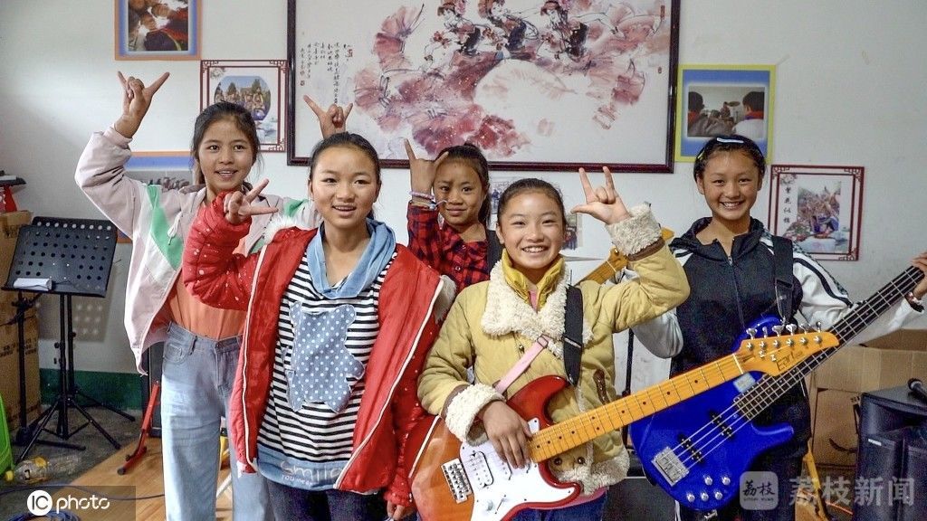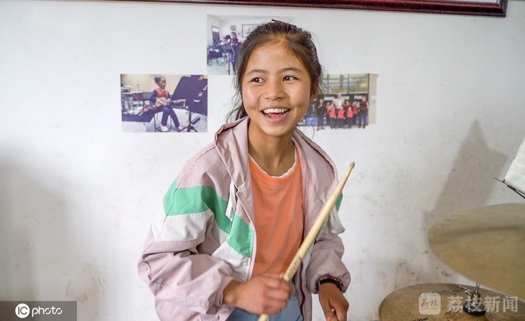 这支乐队的组成更多地来自女孩子们自己的选择。“当时我们在学校学尤克里里,但坚持学的人越来越少,最后就剩下我、熊婷、熊秋花和黄玉梅四个人。顾老师就让我们各自挑选喜欢的乐器,组成乐队。我想像顾老师一样弹奏,就选了吉他,她们三个刚好都选了不一样的乐器,就差一个主唱。”龙娇回忆。