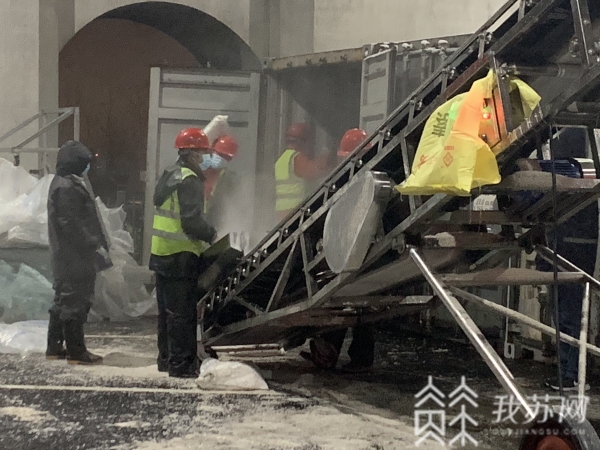 平均每小时为扫雪车补给一次,每次400袋,每袋50斤,身体并不强壮的井瑞博从29号早晨就一直奋战在这里,今年是井瑞博第一次参加“冬防”工作,很累,但是他觉得很值得。“虽然很辛苦,但为了广大人民群众能够顺利的通过江心洲大桥,我们不惜一切,都要把这个任务完成。”