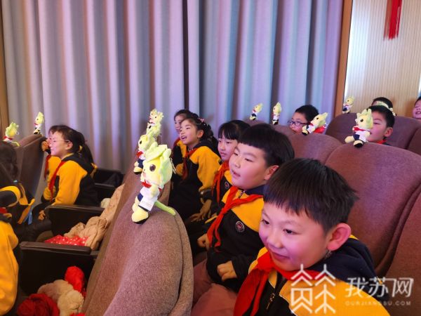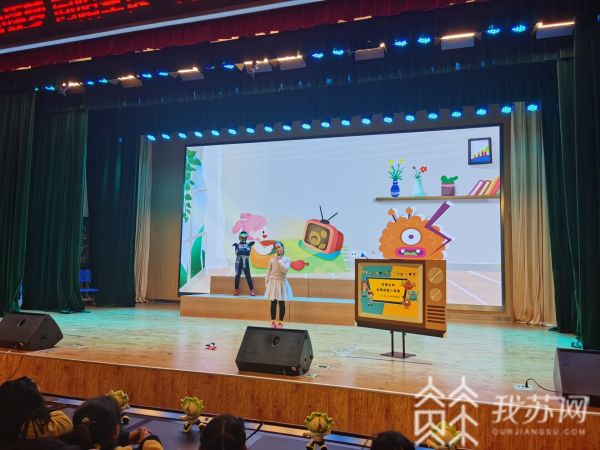 璀璨的灯光映在孩子们的脸庞,勾勒出一个个欢乐的剪影,现场气氛热烈而活跃。灯光暗场,大幕拉开,校合唱队《西风的话》给全场观众带来了一场听觉盛宴,独特的“倒计时”方式更是点燃了全场的气氛。伴随着啦啦操《Let’s play》的精彩律动,主持人吴沛彦老师、孟庆鹏老师以及三(12班)的倪子轶、四(2)班的陈贝宁同学闪亮登场,宣布展演活动正式开始。全校的小南狮们在教室内观看网络同步直播,现场二年级部分班级的孩子带着“小南狮”一起来看剧!