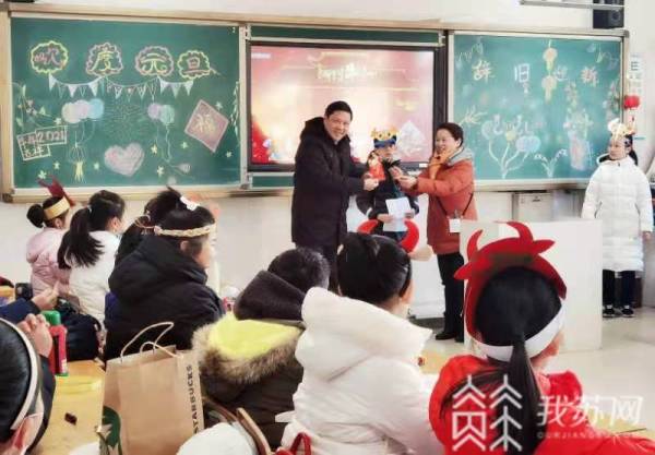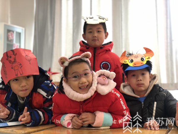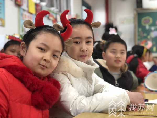 在南京理工大学实验小学,校园很安静,操场上的积雪还没有融化,三楼四(2)班教室传来阵阵笑声。墙上挂着学生们自制的“牛年”贺年卡,课桌围成一圈,把中间空出来留给表演节目的学生。学生党伟平表演了一段《木兰辞》,并送上新年祝福,“祝福大家阖家团圆,一起快快乐乐过新年。”
