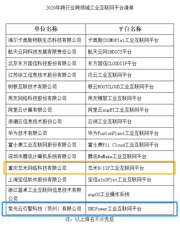 在国家工信部公布的15家2020年跨行业跨领域工业互联网平台清单中,紫光云引擎科技(苏州)有限公司的“UNIPower工业互联网平台”成功上榜,同样上榜的重庆忽米网络科技有限公司也已经入驻相城。