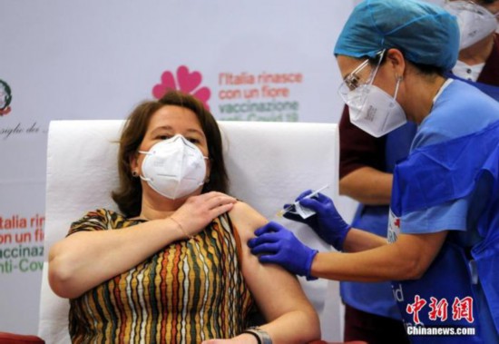 资料图:2020年12月27日,意大利巴勒莫, 人们在医院有序接种预防新冠的疫苗。图片来源:ICphoto
