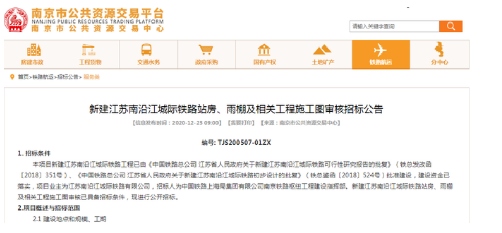近日,南京公共资源交易平台也发布《新建江苏南沿江城际铁路站房、雨棚及相关工程施工图审核招标公告》,根据招标内容,将开工建设句容站、金坛站、武进站、江阴站4座车站,站房工程、雨棚和相关工程的建设,其中站房工程建设工期为24个月,分1个标段。