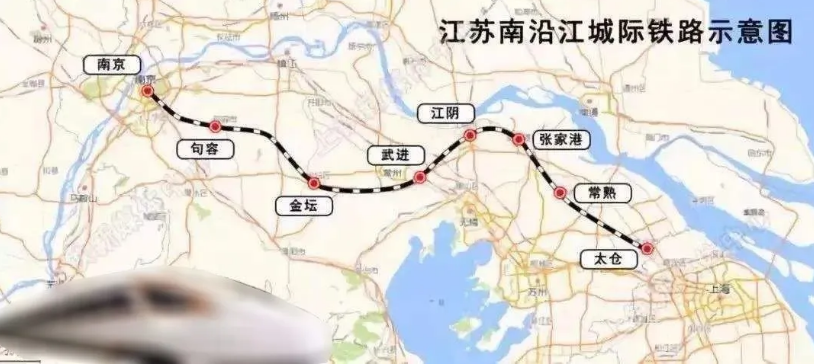 南沿江城际铁路是时速350公里的高速铁路,起于南京南站,东经句容市、金坛区、武进区、江阴市、张家港市、常熟市,终至在建的沪通铁路(上海—南通)太仓站。通车后,沿线地区将正式融入沪宁一小时高铁圈。