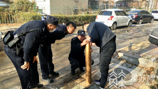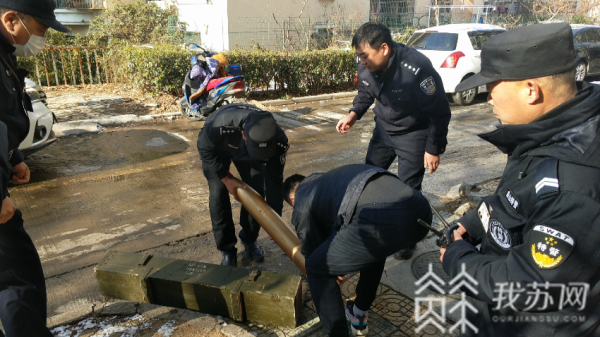 2021年1月1日中午,徐州奎山派出所接群众报警称,在徐州市泉山区奎山所辖区某小区一地下室墙角,有一个木箱子里面放着一个炮弹,民警立即出警到达现场进行处置。