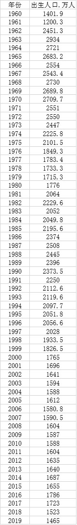 记者对近六十年出生人口统计梳理发现,近30年(即1990到2019年)比上一个30年少生1.42亿人,按照推算,两年后退休洪峰即将到来。