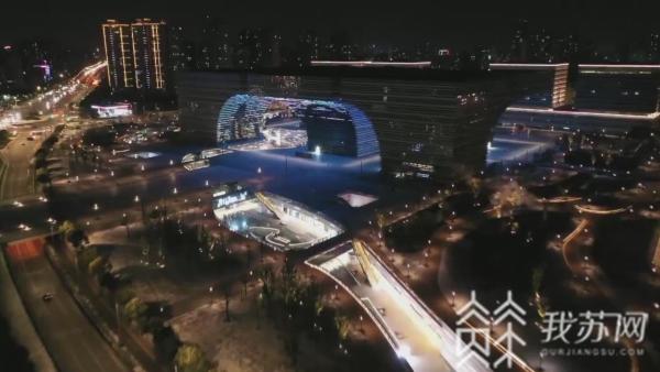城市新地标文化广场,西太湖揽月湾景观塔也在夜空中熠熠生辉,与常州市民共迎新年。