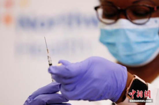 资料图:当地时间2020年12月14日,纽约长岛犹太医疗中心护士准备注射新冠疫苗。当日,辉瑞公司首批近300万剂新冠疫苗陆续运抵美国各地。 中新社记者 廖攀 摄
