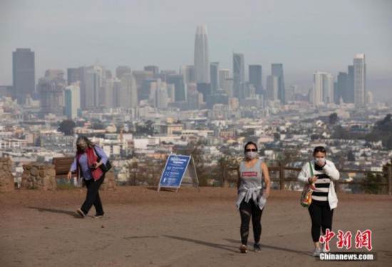 资料图:当地时间1月1日,美国加州旧金山市民戴着口罩,在一处公园休闲。 中新社记者 刘关关 摄