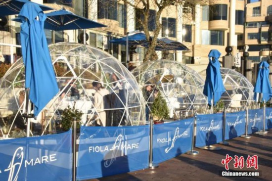 资料图:美国首都华盛顿民众在室外“泡泡”餐厅用餐。 中新社记者 沙晗汀 摄