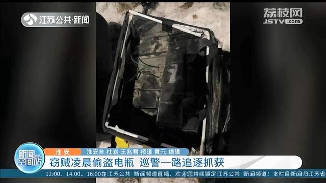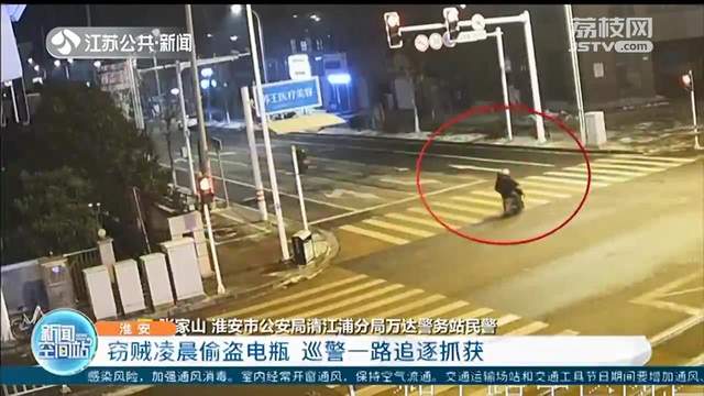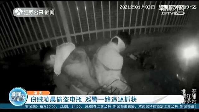 1月3号凌晨3点左右,在淮安市区环宇路与和平路交汇处,正在巡逻的民警发现路边有两人行迹可疑。监控画面显示,其中一人驾驶摩托车停在路边四处张望,另一人正在拆卸一旁电动车上的电瓶,二人听见警车鸣笛后慌忙逃跑。