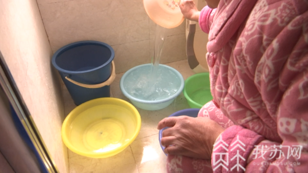 王女士表示:“我们需要到楼下提水,每天提7、8桶,家里所有的盆都拿出来了。”