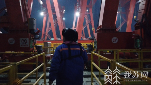 从早上7点,一直站到中午11点,沈建俊专注于施工中的每一个细节。吃午饭,也只能忙里偷闲,抓紧解决。吃完饭,沈建俊再次登上沉井。冬季昼短夜长,晚上6点半,整个工地已经没入沉沉夜幕。检查完吸泥机,确保运行正常后,沈建俊才带队离开。转身,他又来到了监控室。