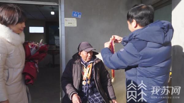 当地街道和社区第一时间将这枚勋章送到老人手上。