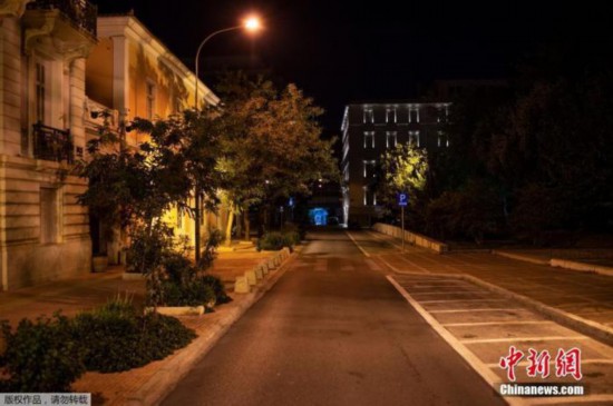 资料图:当地时间11月15日,希腊雅典,市内街道上空无一人。