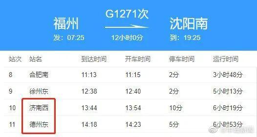 G1271次高铁途经山东两站,分别是济南西、德州东。