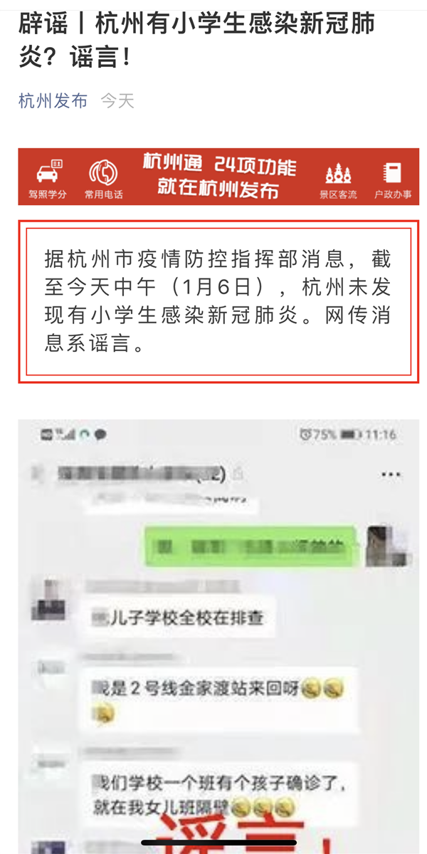 荔枝新闻讯 据“杭州发布”微信公众号1月6日发布的消息,截至今天中午(6日),杭州未发现有小学生感染新冠肺炎。网传消息系谣言。