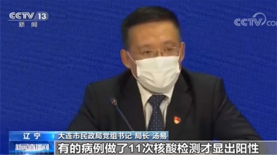 大连市民政局党组书记、局长 汤易:由于本次疫情具有潜伏期长、传播速度快、情况复杂等特点,有的病例做了11次核酸检测才显出阳性,有的地区检测6轮还有阳性病例出现。