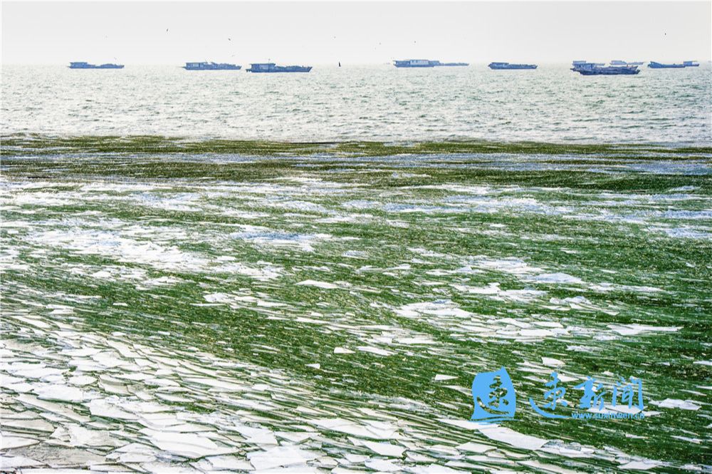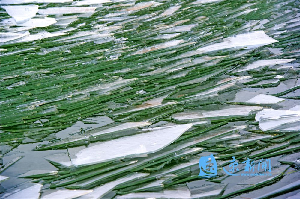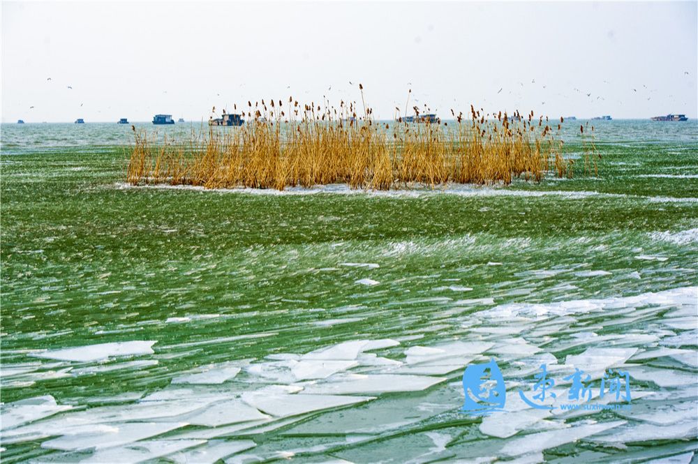 1月6日,在宿迁市湖滨新区骆马湖畔出现“冰花”奇观,与湖上的渔船、候鸟交相辉映,颇为壮观。