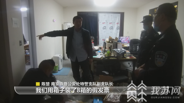 2020年年底,一旅客所持车票在南京站无法通过核验,工作人员随后通知了派出所。民警追查,这位旅客从网上购买的这张车票,通过快递从上海某小区发出的。民警赶赴上海,通过2天外围蹲守摸排,发现小区内藏有一个制售假票窝点。1月2日晚6点,抓捕行动开始。