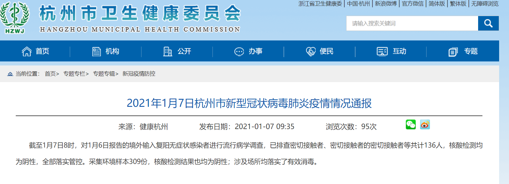 杭州市卫健委网站截图